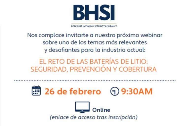 Berkshire Hathaway Specialty Insurance (BHSI) celebrará el próximo 26 de febrero a las 9:30 horas un webinar bajo el título El reto de las baterías de litio: seguridad, prevención y cobertura.